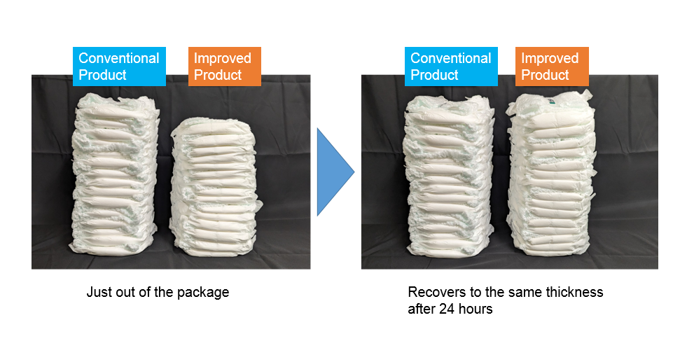 - The new products with higher compression rates also recover to the same thickness as the conventional product within approximately 24 hours after the package is opened.