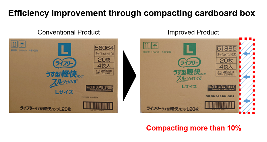 - As a result, the size of the cardboard boxes has also been reduced by over 10% compared to conventional products.*4