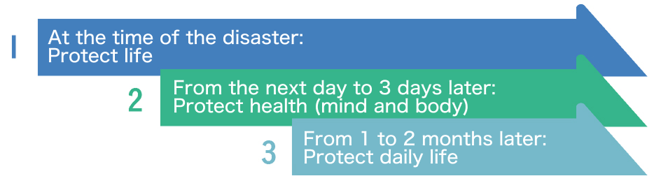 The most important thing in disaster preparedness is to protect life. Then, protect physical and mental health in the days following the disaster, and finally, work toward restoring everyday life.