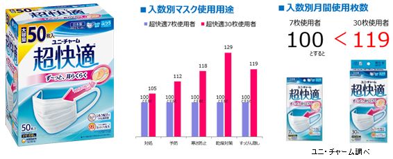 ユニ・チャーム株式会社(本社:東京都港区、代表取締役 社長執行役員:高原豪久)は、お客様の使用実態やニーズの変化に合わせたマスクを提供し、メーカー売上No.1※1のご支持をいただいています。この度、予防用途が風邪・インフルエンザに限らず、マスクのニーズも多様化してきていることに対応するため、家族で気軽にケアできるカラーマスク、『超快適Ⓡマスク 息ムレクリアタイプ ブラック』、『超快適Ⓡマスク ピンクふつうサイズ』、『超快適Ⓡマスク 園児専用 おやこ動物柄』※2を、2019年8月27日より全国で発売します。