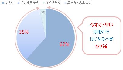 →体験会参加者の97%が、「今すぐ」、「早い段階から」はじめるべきと回答されました。