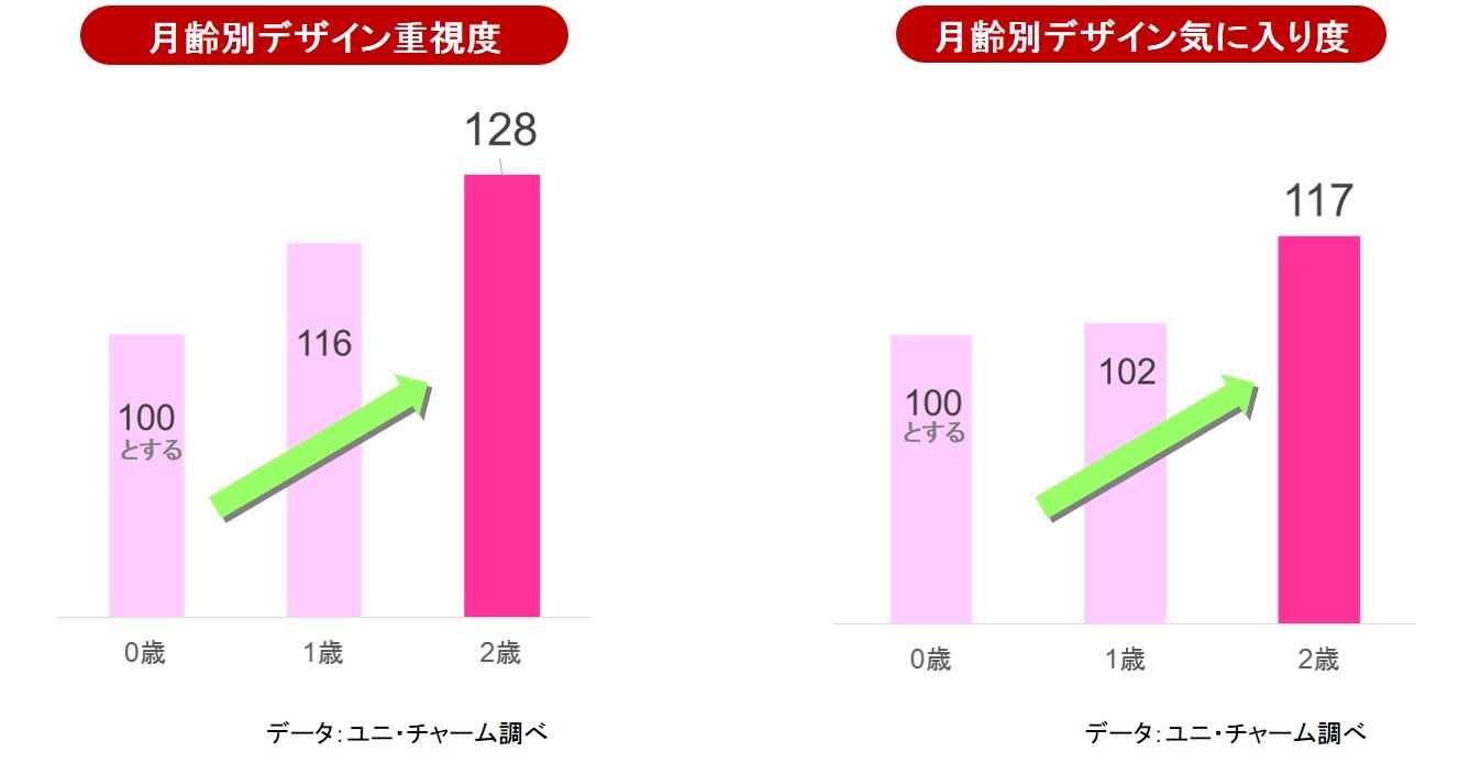 一方で、月齢が高くなると「デザイン」のニーズが拡大することがわかりました。