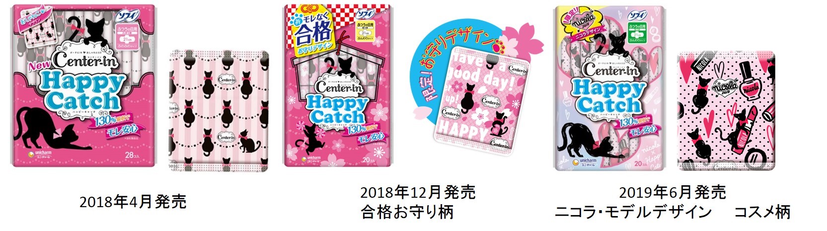 『ソフィ® センターイン ハッピーキャッチ』は娘たちの「生理中はいつもモレないか不安」という悩みと「持ち物にこだわりたい」という思い、また「娘に合った商品を選びたい」という母親の思いを両立した“かわいくてモレ安心”な生理用ナプキンとして、2018年4月に発売いたしました。