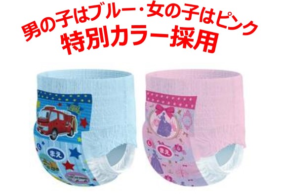 一方で、最近の子供用の下着はカラフルに進化していることから、この度、男の子・女の子それぞれに特別カラーを採用し、より下着らしいデザインに進化した「オヤスミマン」を全国で発売します。