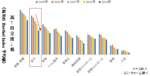 介護する方149人に生活動作に関する意識調査を5年継続で実施