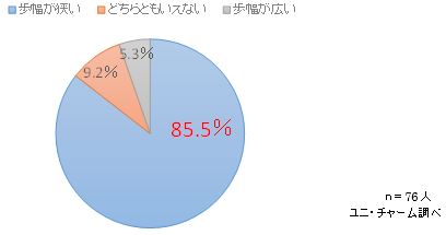 以前と比べ歩幅が狭いと感じる方は85.5%と大半を占める。