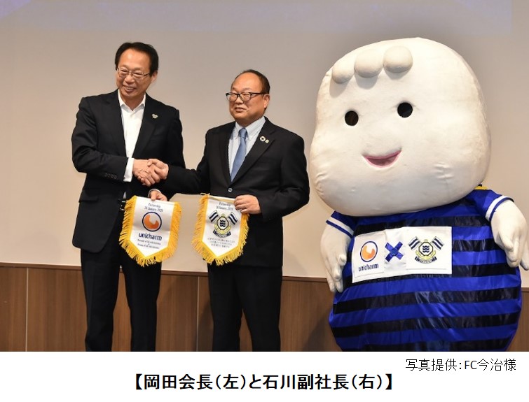 ユニ・チャームは、「共生社会実現パートナー」として、商品やサービス及び社会貢献活動を通じて得た知見をいかし、FC今治の選手・スタッフ・サポーターのみなさんとともにスポーツビジネスを通じて、地方創生に貢献していきます。