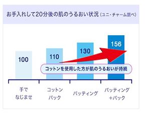 当社は外部機関とお肌のお手入れ方法について共同研究を行い、手で化粧水をなじませるだけに比べて化粧用パフ・コットンによるパッティングがスキンケアに着用であることが分かりました。