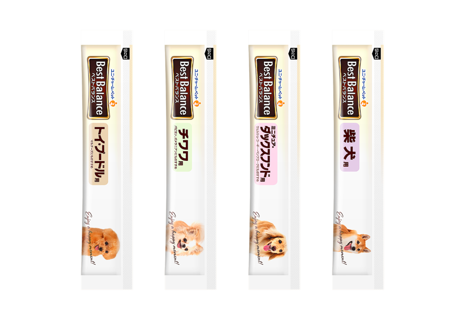当社は2019年11月にスティック形状でウェットタイプの犬用おやつ『ベストバランスおやつ』を発売以降、犬種に応じた栄養バランスと、飼い主様と愛犬のコミュニケーションにつながる点が評価され、好評をいただいております。今回新たに、高齢犬の身体の健康に配慮したおやつの開発に取り組みました。そこでこの度、主要4犬種であるトイ・プードル、チワワ、ミニチュア・ダックスフンド、柴犬の高齢犬で特にケアしてあげたい栄養成分を強化したスティック形状でウェットタイプのおやつ『ベストバランスおやつ高齢向け』を、2020年3月9日より、全国にて新発売します。