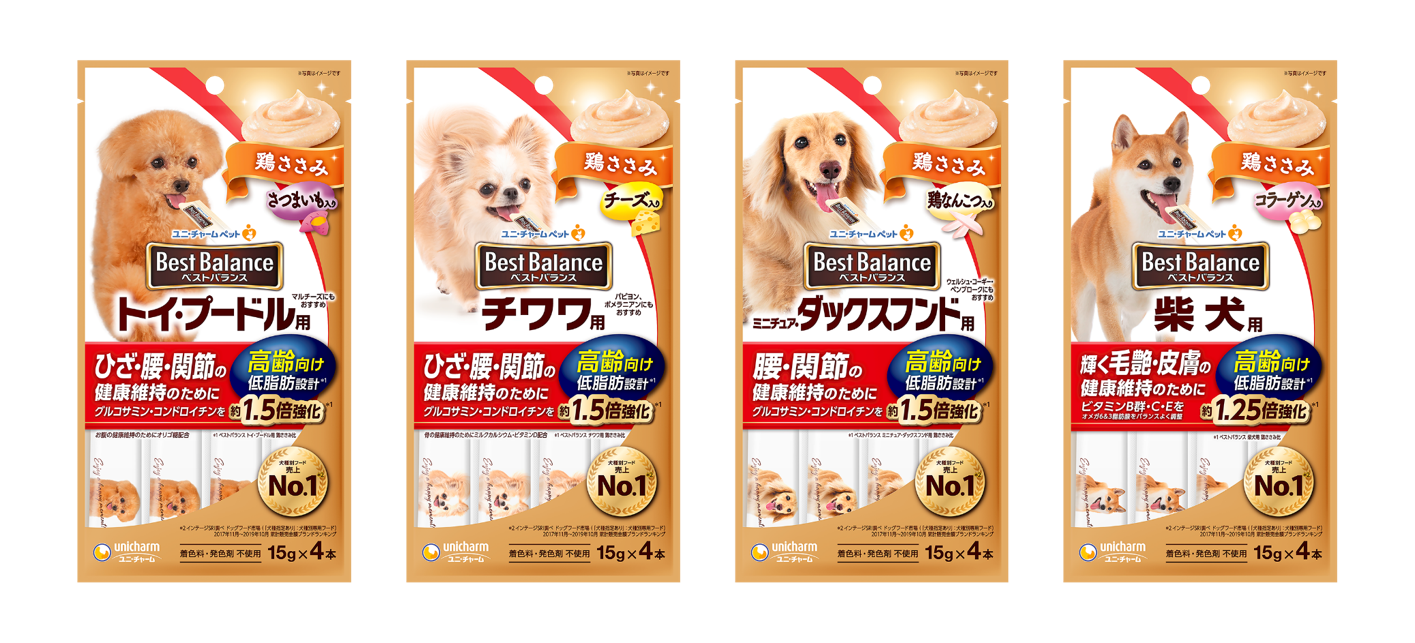 ユニ・チャーム株式会社(本社:東京都港区、代表取締役 社長執行役員 : 高原豪久)は、犬種ごとの身体の特徴に合わせて健康をサポートする犬種別栄養バランス食「ベストバランス」から、トイ・プードル、チワワ、ミニチュア・ダックスフンド、柴犬の高齢犬で特にケアしてあげたい栄養成分を多く配合した『ベストバランスおやつ高齢向け』を2020年3月9日より全国で新発売します。
