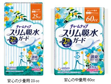 ユニ・チャーム株式会社(本社:東京都港区、代表取締役 社長執行役員:高原豪久)は、女性用軽度失禁ケア用品のトップブランド「チャームナップ」より、安心できる吸収力に加え装着性にこだわった『チャームナップ スリム吸水 ガード』安心の少量用25㏄と安心の中量用60㏄を、2020年4月7日より全国で発売します。