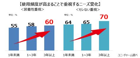 当社は1997年に尿もれケア専用品を発売して以降、尿もれに関する正しい知識の啓発や、正しい尿もれケア専用品の使用方法等の普及活動に力を入れてまいりました。こうした活動を通して、軽度失禁ケア用品市場は3倍以上に拡大しています。市場拡大する背景の一つに、突然尿意を催す“尿もれ”に備えて使用するため、対処頻度が高く、汚れたときにこまめに取り替える方が多くいます。その結果、専用品を使用する期間が長くなり、尿もれケア専用品で重視するニーズとして、「装着性がよいこと」「もれないこと」と変化しています。