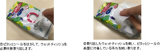 『外出用シルコットウェットティッシュ』取り出し口の汚れを拭い取る