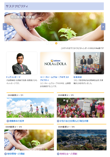 ユニ・チャーム株式会社(本社:東京都港区、社長:高原豪久)は、「サステナビリティレポート2020」(旧 CSR活動報告)を当社WEBサイト「サステナビリティ」に公開しました。