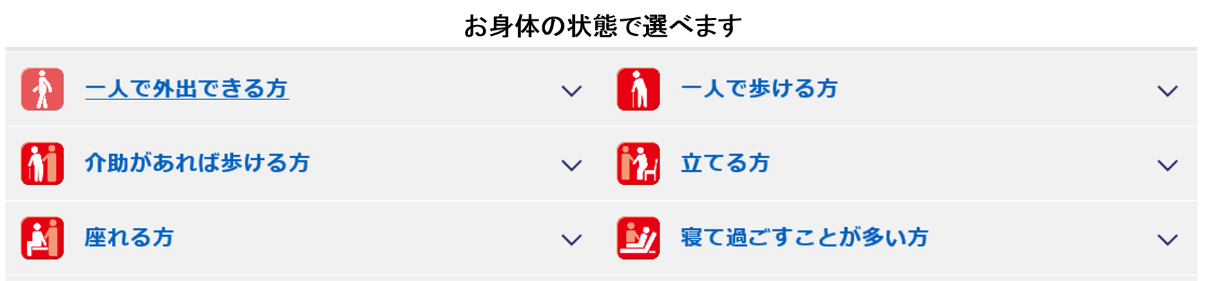 そこで『ライフリー』は、ご本人のお身体の状態に合わせて、家族と自宅で気軽に健康を維持するために、歩行をサポ―トする商品や体操を組み合わせて提案し、生活動作や生活意欲を高め、生活全体の自立度を引きあげてまいります。