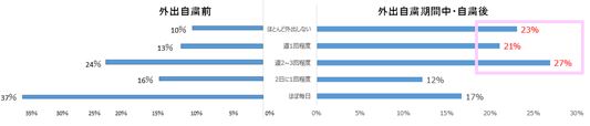緊急事態宣言の環境下もあり、71%が「週に2~3回以下」の外出に留めたと回答。