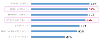 約半数が「健康の為に運動したい」「家で過ごす時間を充実させたい」と回答。