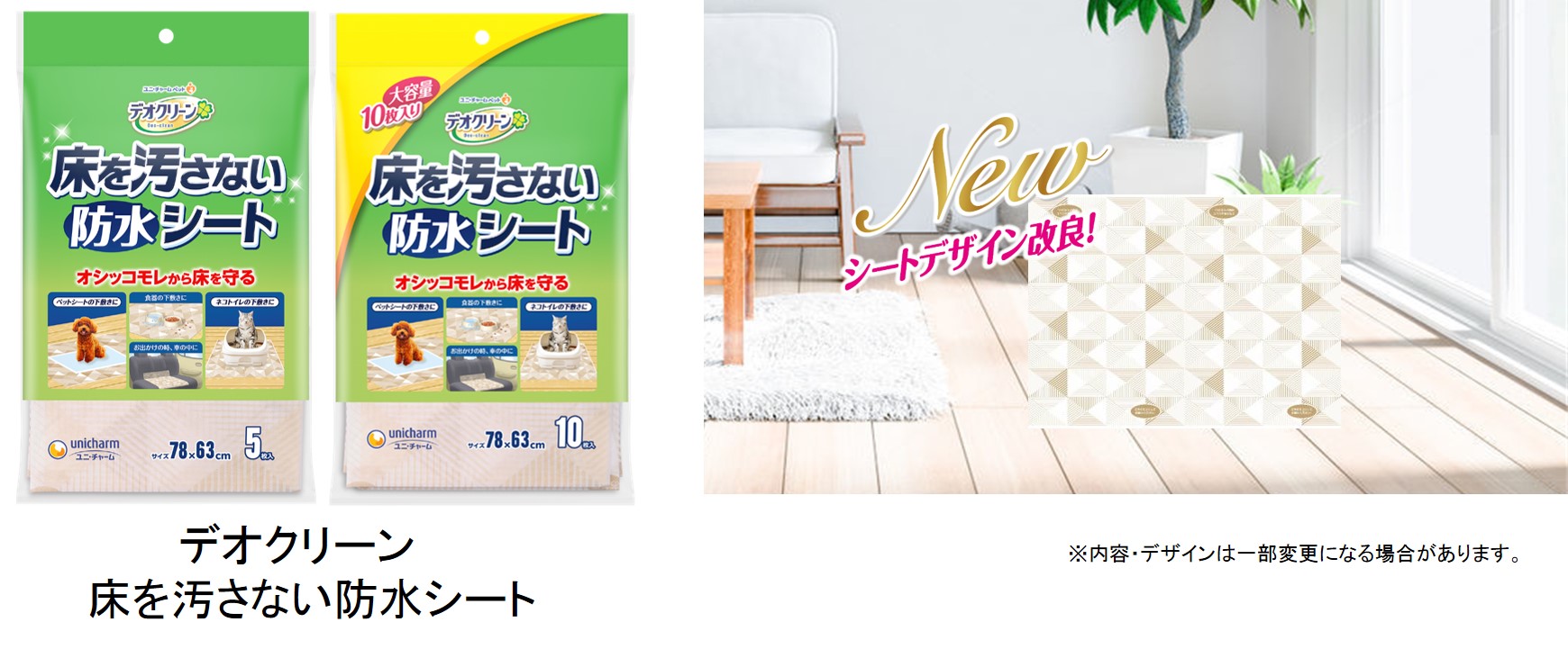 ユニ・チャーム株式会社(本社:東京都港区、代表取締役社長執行役員 : 高原豪久)は、ワンちゃんの清潔・健康をケアする“デオクリーン”から、お客様のデザインに対するご要望にお応えし、高評価をいただいている「モレずにズレない」機能はそのままで、リビングに合ったシートデザインに改良した「デオクリーン床を汚さない防水シート」を、2020年9月14日に全国で新発売します。