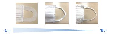 ②マスクの耳かけ部、ヒモの太さ選び