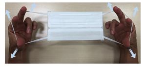 ③マスクの耳かけ部を伸縮させて準備