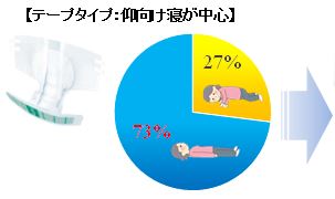 当社で提供する『ライフリー』は、大人用おむつ市場を牽引するブランドとして、高齢者の残存能力を最大限活かしたトイレ動作を支援する紙パンツやサービスを提供することで、健康寿命の延伸に貢献しています。主に寝て過ごす方が使用するテープタイプの紙おむつの市場は減少する一方、下着に近いパンツタイプの紙おむつ市場は年々拡大し、年間成長率は105%となっています。こうした中、パンツタイプは昼夜問わず使用されることから、最近では夜間の横向き寝の姿勢から発生する横モレが心配で、眠りが浅くなる傾向にあることが分かってきました。