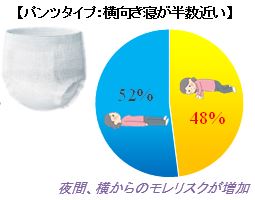 夜間、横向き寝姿勢でもモレを防ぐ紙パンツ用パッド