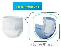 - 紙パンツの中にキレイに収まる、長さ57cm安心ロング形状を採用。