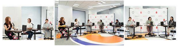 『7Days Box』に含める生理用品と生理期間を快適に過ごすためのアイテムを選定するために、プロジェクトメンバーの5人の間で、国際ガールズ・デーに対する考えや生理に対する意識を踏まえ、意見交換が行われました。当社商品については、ナプキン以外にも、生理期間の悩みであるモレやムレを解決する生理ケアとして、シンクロフィットなどの商品が選ばれました。また、ケアアイテムについては、メンバーに自身の経験から、生理期間の悩みに応えるものや自身の気持ちを明るくするものを事前に選んできてもらい、紹介してもらいました。5人それぞれが、一人でも多くの方に生理期間を快適に過ごしてほしいとの想いを込めて、アイテムを選んできたことが伝わるディスカッションとなりました。