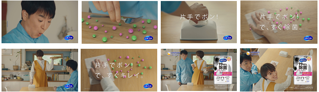 CMの最後には「99.99除菌※」と声を揃えて仲良くテーブルを除菌します。まるでおふたりのリアルな日常を再現したかの様な、明るく楽しい自然体の演技に、ぜひご注目ください。