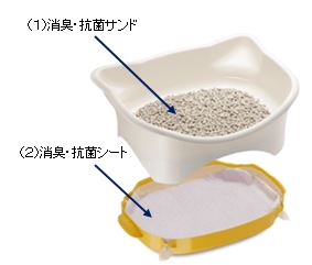 (1)約1ヶ月交換不要※3の「消臭・抗菌サンド」は、オシッコを素早く下層に通過させ、ミクロの穴でニオイを吸着
