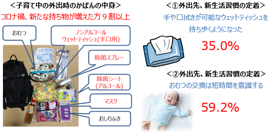 コロナ禍で保護者の9割が外出時の荷物が増加