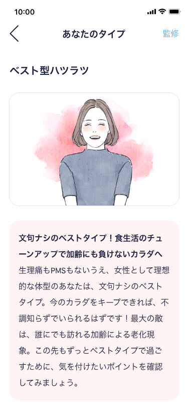 - 体調も登録でき、自分の体のタイプもわかるのは嬉しい。(23歳・女性)