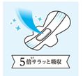 当社従来品の5倍の※2サラッと吸収してモレ安心、さらにドロッとした経血まで吸収※3するので、モレを気にすることなく安心してお使いいただけます。