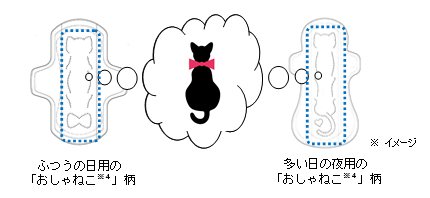 かわいい「おしゃねこ※4」デザインでハッピー気分!しかも、130%吸収※5でモレ安心。