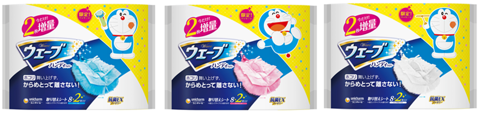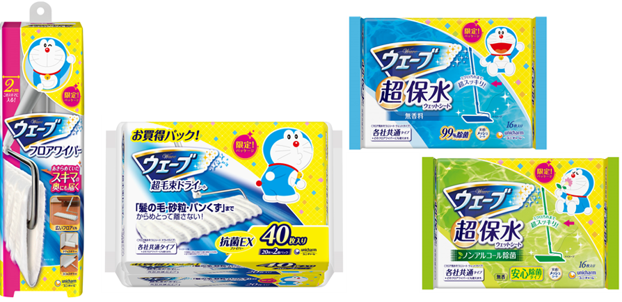 そこでこの度、育児世帯特有のニーズに応えて、子どもから大人まで大人気の「ドラえもん」をデザインし、『ウェーブ』からハンディワイパー・フロアワイパーのデザイン企画を全国で限定発売します。