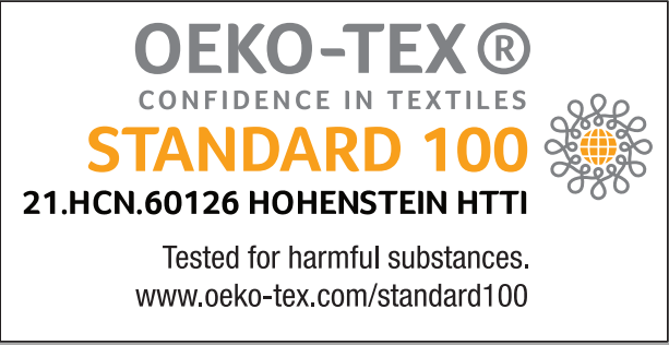 OEKO-TEX Ⓡ(エコテックス®)スタンダード100とは、エコテックス®国際共同体に加盟する認証検査機関により、350種類以上の有害化学物質が対象となる分析試験の結果、厳しい基準をクリアした製品のみに与えられる、国際的な繊維関連製品の安全性に対する認証です。この認証ラベルを使用するには、製品を構成するすべての素材や化学薬剤が試験の基準をクリアしなければなりません。よって、ラベルが付けられた製品は高い安全性を持つ製品の“証”となります。