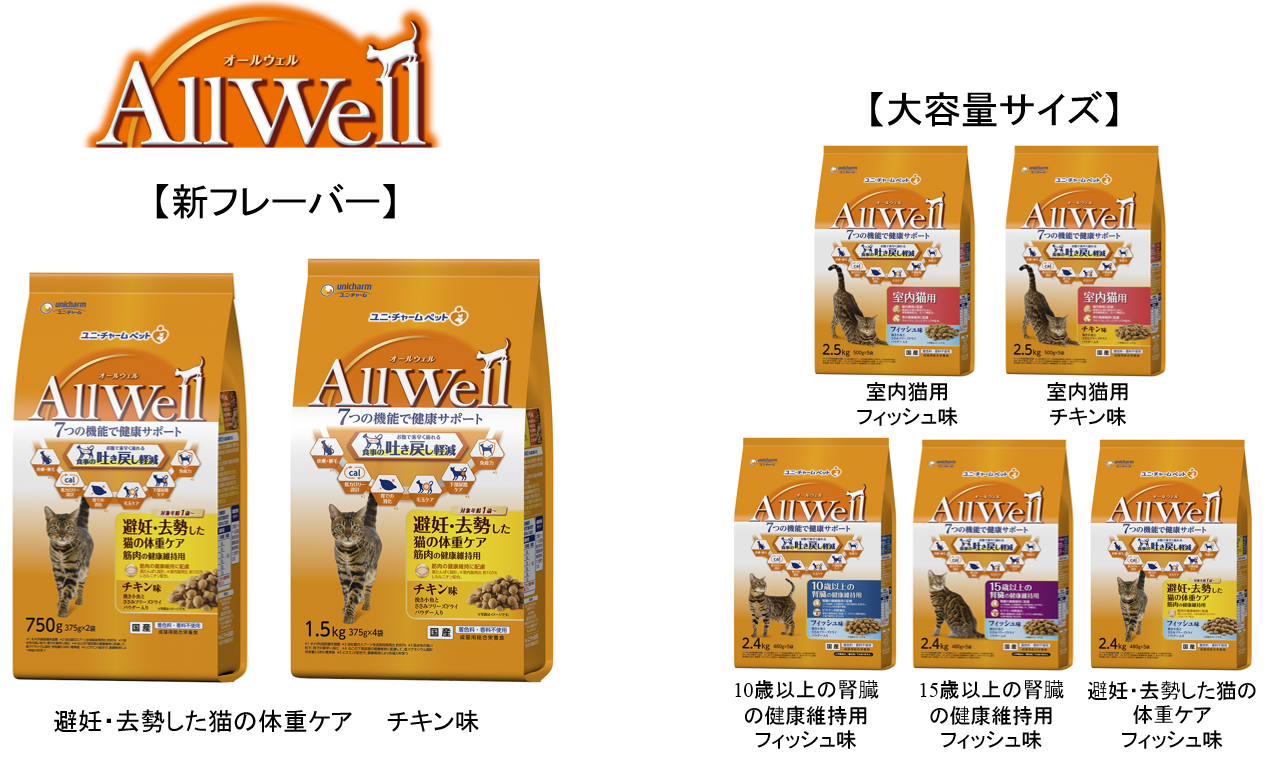 猫用健康機能食『AllWell』から「避妊・去勢した猫の体重ケア」に人気のチキン味追加、まとめ買いニーズに対応した大容量サイズ 新発売