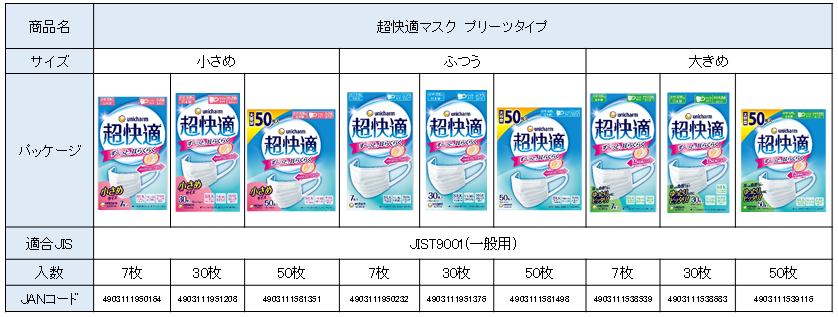 ユニ・チャーム株式会社(代表取締役 社長執行役員:高原豪久)は、マスク性能の目安である「日本産業規格「JIS T9001」の制定を受けて、『超快適マスク』及び『超立体マスク』にて、「JIS T9001」の適合審査を通過し、適合番号を取得しましたのでお知らせします。