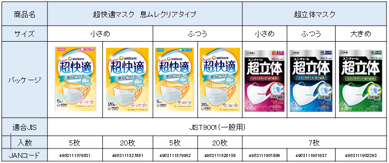 ユニ・チャーム 一般流通用 『超快適マスク』『超立体マスク』
