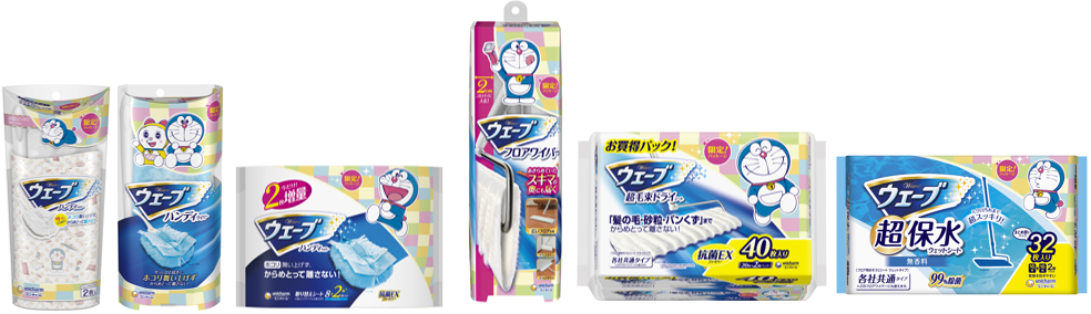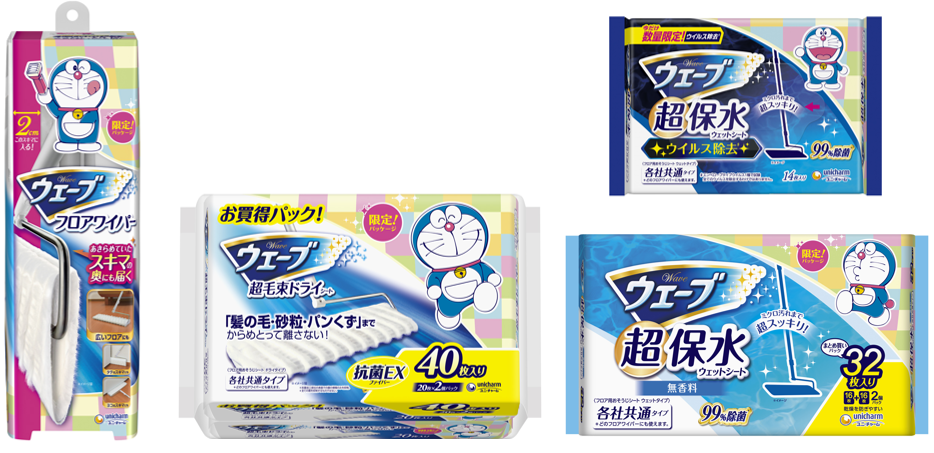 ユニ・チャーム株式会社(代表取締役 社長執行役員:高原豪久)は、奥まで、すごキレイ!と話題の『ウェーブ』から、子どもから大人まで大人気のドラえもんデザインを採用した“ハンディワイパー・フロアワイパー”第2弾を2021年10月5日より全国で限定販売中です。