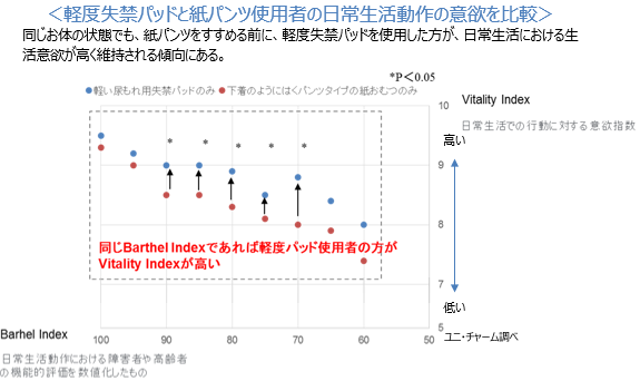 いつもの下着で尿もれケアを続けることが、毎日いきいきとした意欲を支え、フレイル対策につながると考えています。