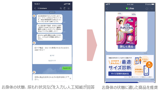 ユニ・チャーム株式会社(代表取締役 社長執行役員:高原豪久)は、大人用排泄ケアブランド「ライフリー」を通じて、介護環境をサポートする商品やサービスを提供しています。この度、お客様や小売店からお問い合わせ多い、大人用紙おむつの「適切な商品」と「最適なサイズ選び」に絞り、ヘルスケアテックとして、LINEによるチャットトークの診断機能と、スマートフォンで撮影して採寸できる人工知能(Artificial Intelligence)技術「Bodygram」を組み合わせた「大人用おむつカウンセリング」を、2021年12月から開始しますのでお知らせします。