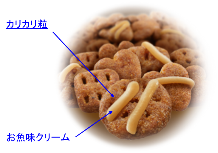 2.お魚味のクリームがドライ粒の外側にかかっているため、味や香りを直接味わえます。
