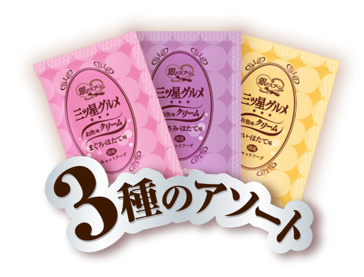そこでこの度、人気フレーバーの”ほたて味”をベースに3種類の味を楽しめる 『銀のスプーン 三ッ星グルメ 』 お魚味クリーム「ほたて味レシピ3種のアソート」を、全国で発売します。