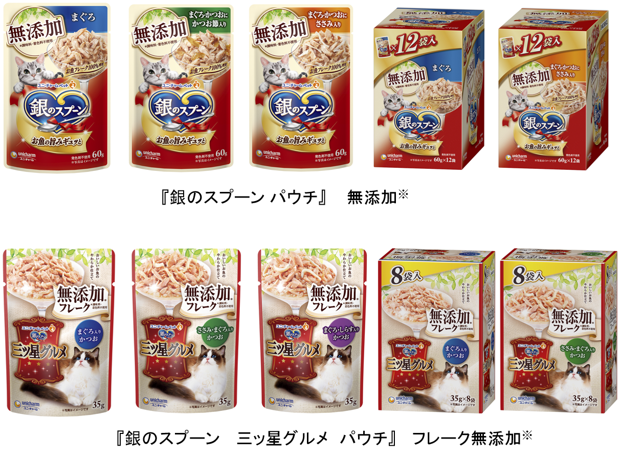 ユニ・チャーム株式会社(代表取締役 社長執行役員:高原豪久)は、猫用フードに対する「安全・安心」に対する関心の高まりにお応えし、『銀のスプーン パウチ』 『銀のスプーン 三ッ星グルメ パウチ』 から“無添加シリーズ”を、2022年3月7日に全国で発売します。
