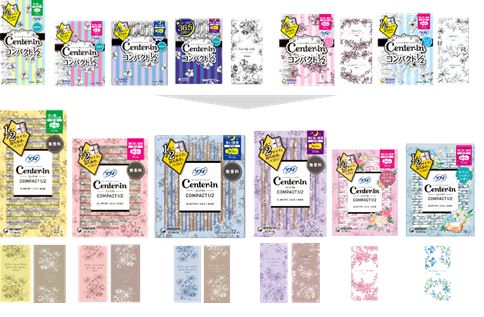 そこでこの度、少しでも生理期間中のストレスを和らげて欲しいという想いから、4年ぶりにデザインを刷新した『センターインコンパクト1/2』を発売します。特に微香タイプは、グリーンを取り入れ、癒しの香りとナチュラルな印象を与えてくれるデザインにこだわりました。