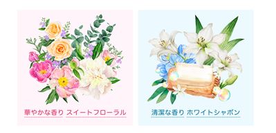 ・「スイートフローラル」と「ホワイトシャボン」の2種類の癒しの香りを展開しました。