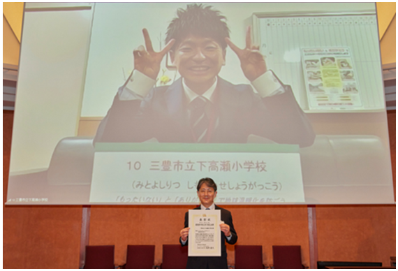 当社は、三豊市立下高瀬小学校の皆さんの活動は、脱炭素社会実現に貢献し持続可能な社会作りにつながる取り組みの良き参考例に資する考え「最優秀やさしでささえる賞」に選出しました。