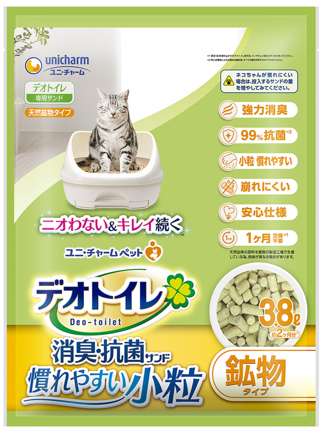 ユニ・チャーム株式会社(代表取締役 社長執行役員:高原豪久)は、猫砂の粒の大きさが現行品の約30%※1と小さく、ネコちゃんが気持ちよく排泄できる『デオトイレ 消臭・抗菌サンド』 小粒を、2022年3月7日に全国で発売します。