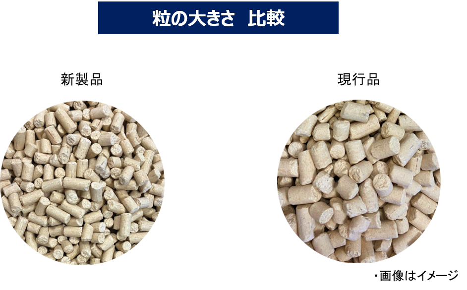 (1)猫砂の粒の大きさが現行品の約30%※1でネコちゃんが慣れやすい